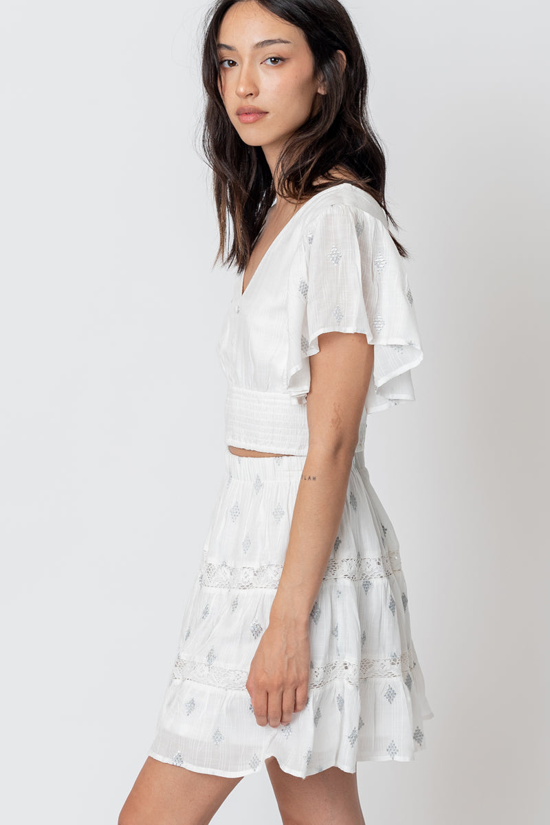 - Flutter Sleeve Cropped Top and Mini Skirt Set