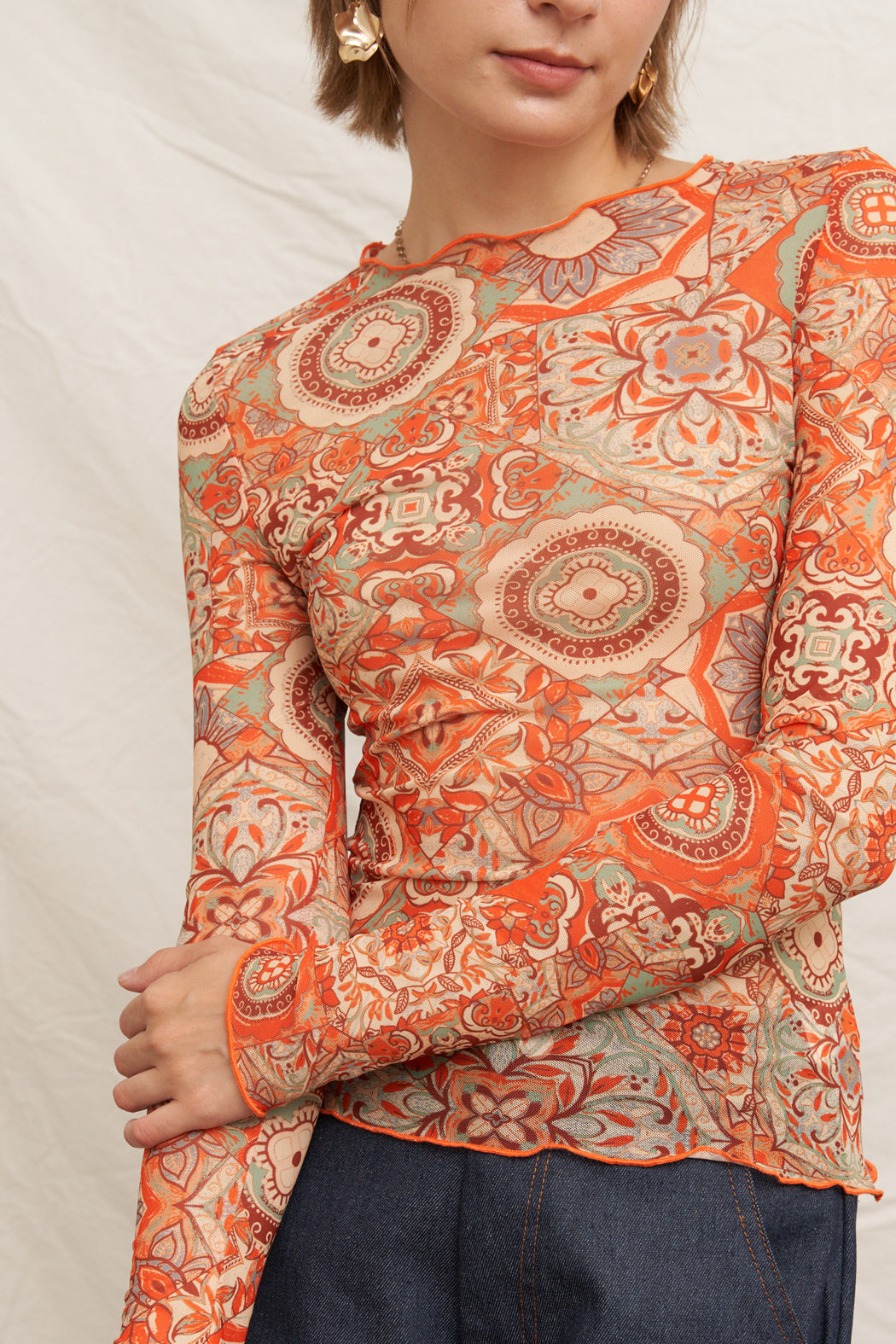 - Long Sleeve Mesh Printed Top